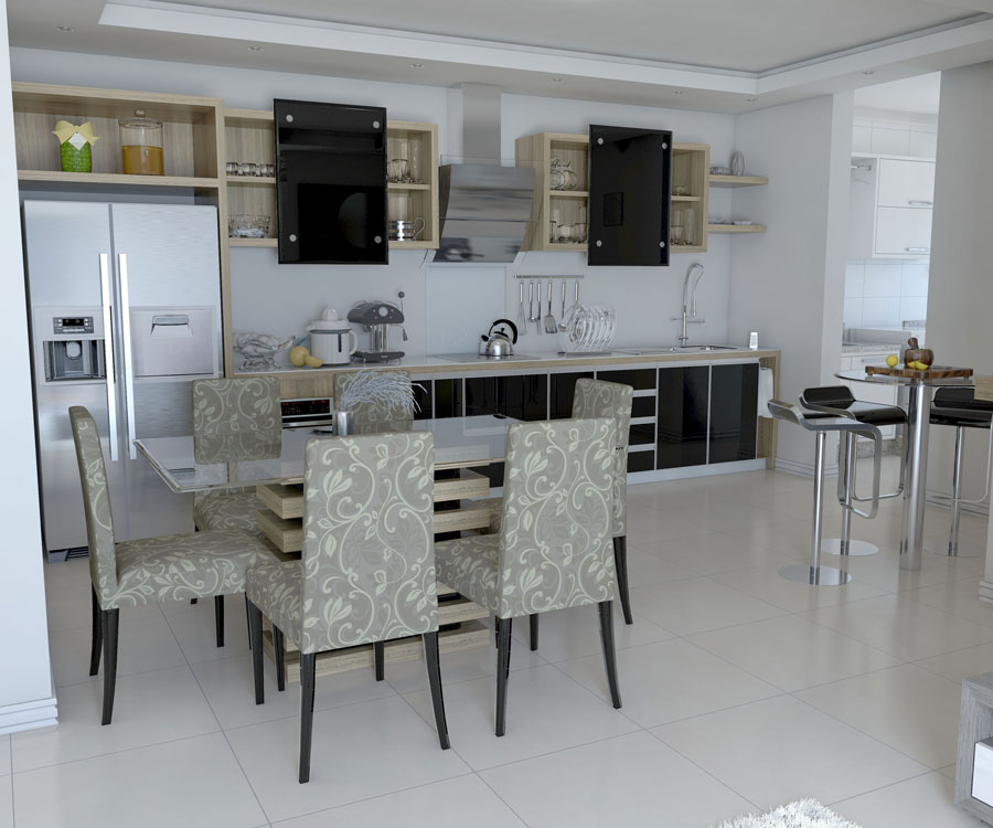 - Cozinha e sala de estar integradas