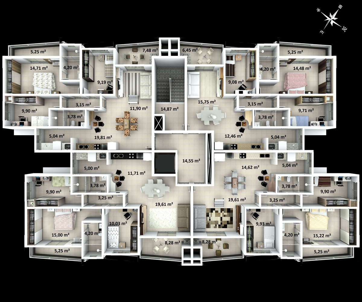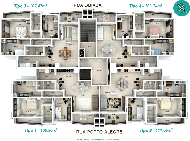 Informamos que as imagens contidas neste material possuem caráter de sugestão de acordo com a Lei Federal 4591/64. Os móveis, assim como alguns materiais de acabamento representados nas ilustrações, não constituem parte integrante do contrato. O apartamento será entregue conforme indicado no memorial descritivo.